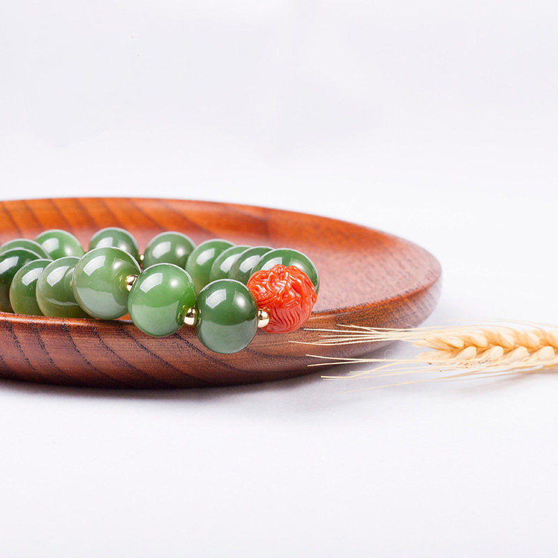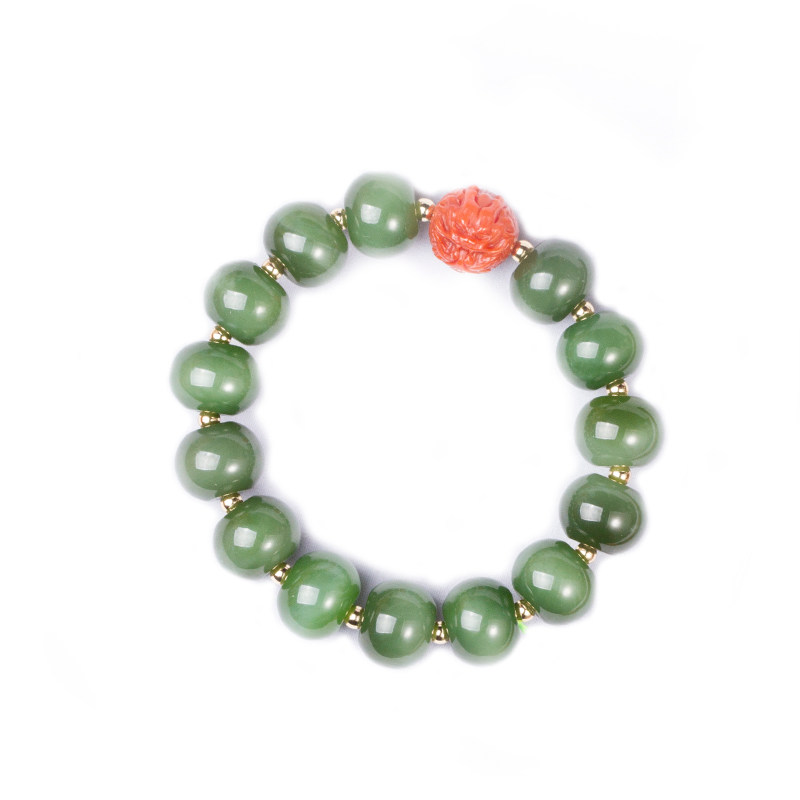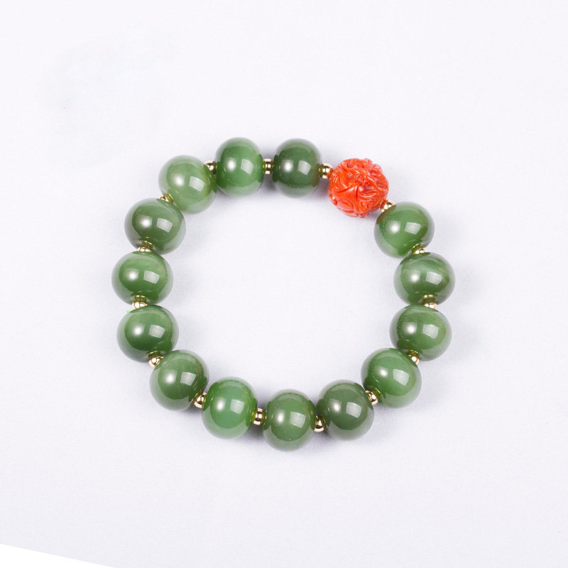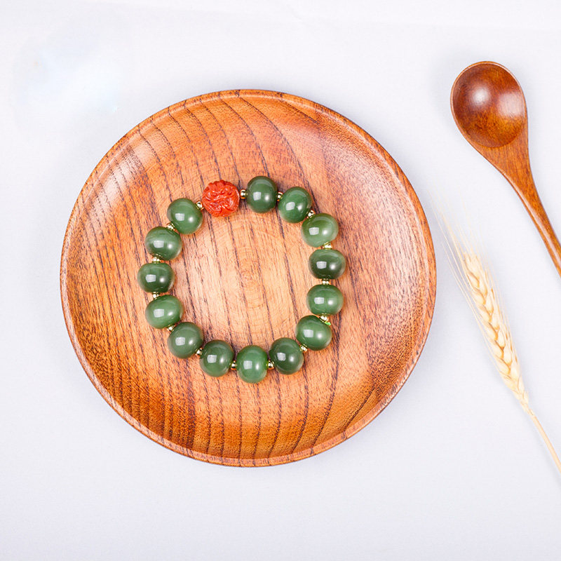 And Tian Yubei jade hand-string Russian material cat eye spinach green and green apple green barrel Pearl Handout the old Zhao Jiao Live