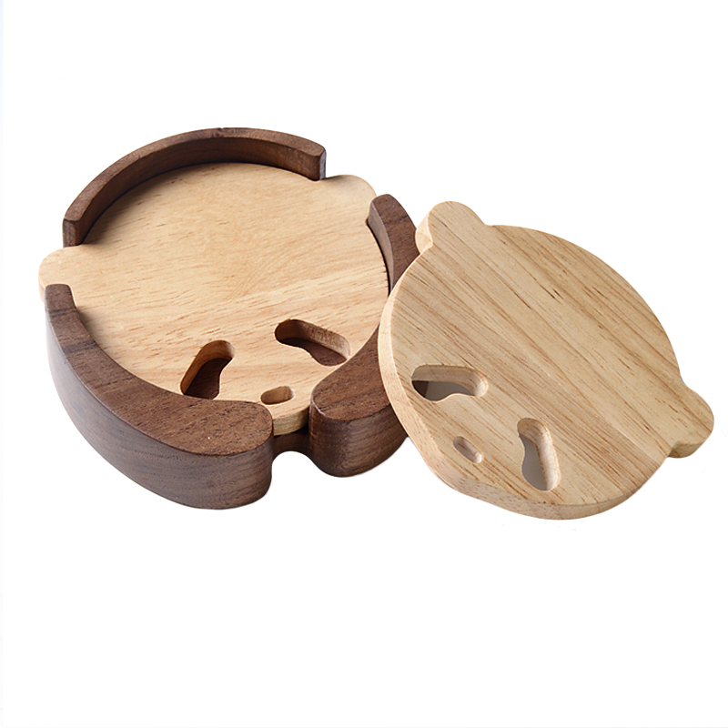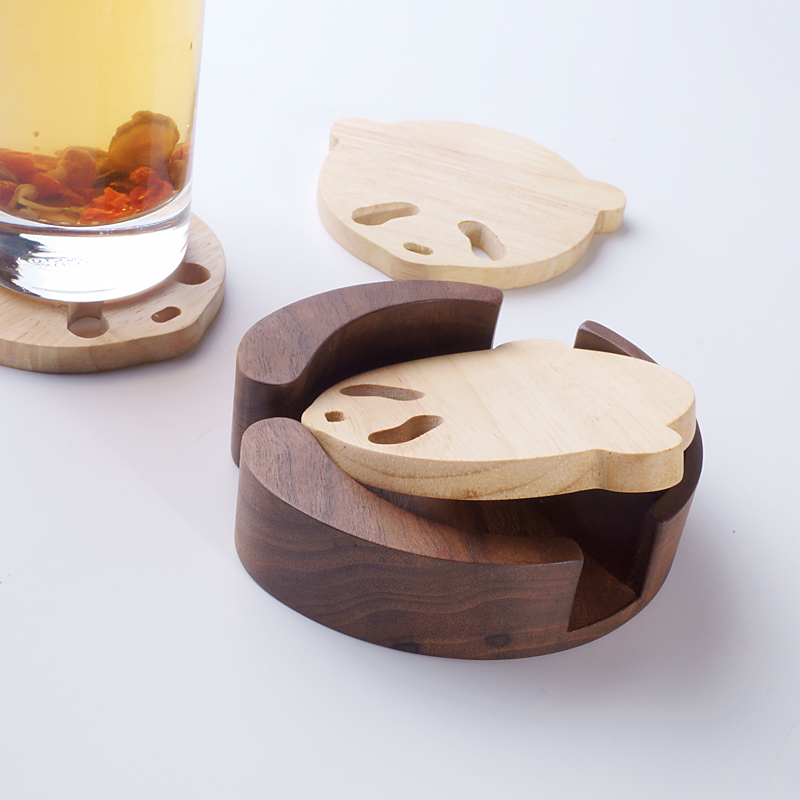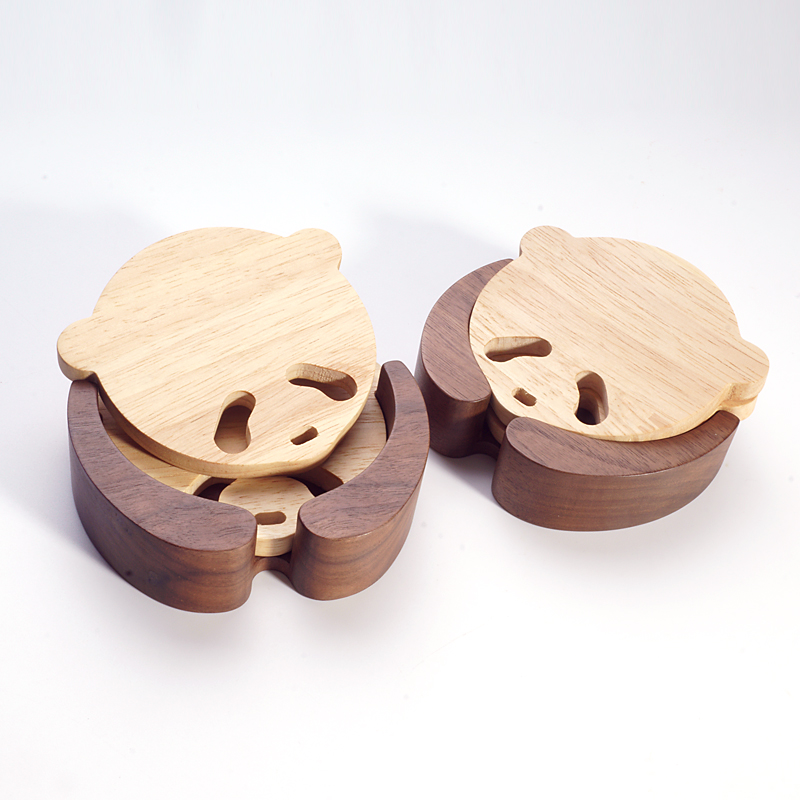 Several people original design panda solid wood round insulation coaster Nordic Japanese restaurant home souvenir gift set