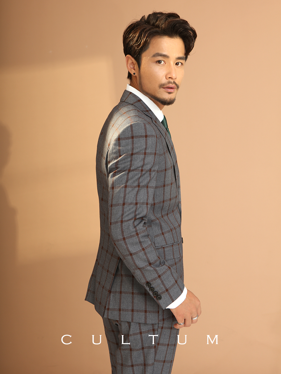 Two pieces of gray single-west dark blue two pieces of gray single-piece gray set