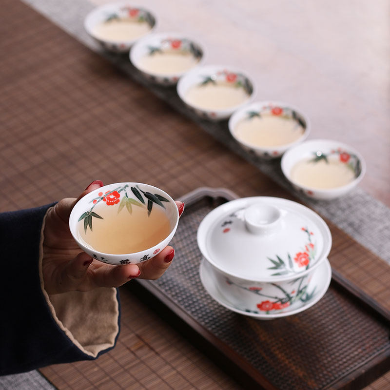 Liling Ceramic Ware Glazed Under the Five Lottery Hand-painted and Ascending Lid Bowls Tasting Cups Tea Sea Chinese Whole Qigfu Tea Furniture
