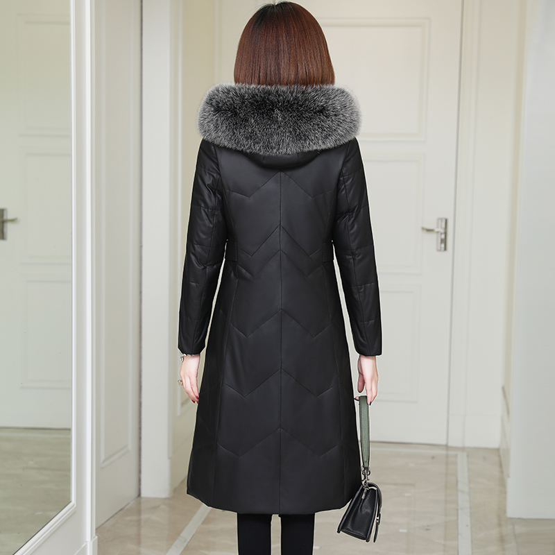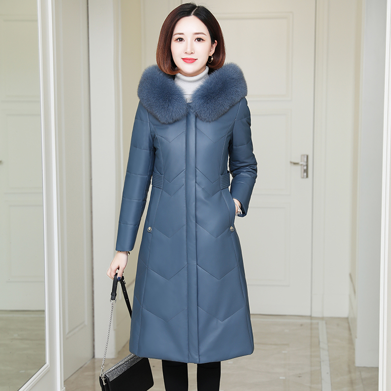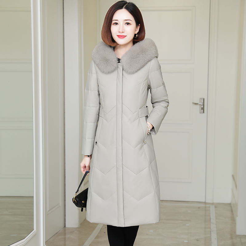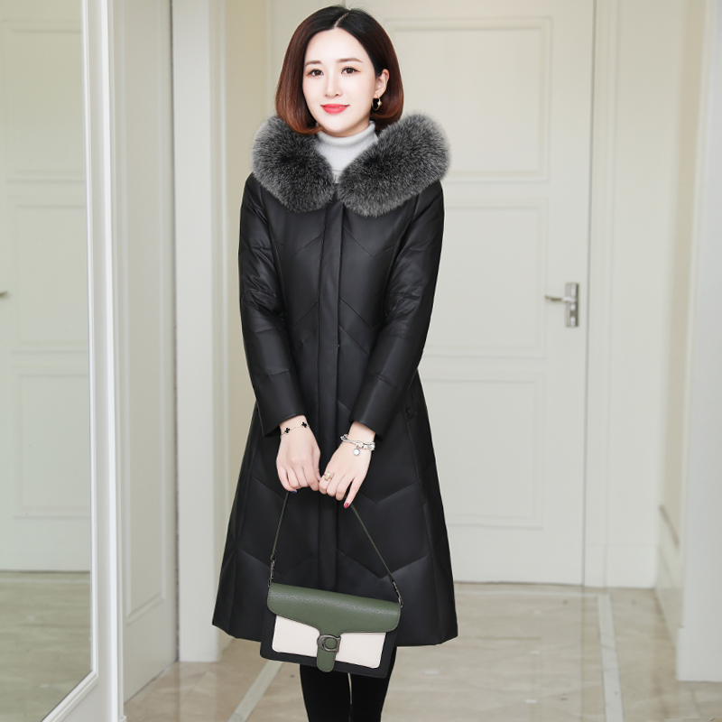 Loneliness Pick and drain genuine leather Down jacket Women's long version 2021 Winter new Lianhood Fox Fur Sheep Leather Heining Leather Clothing