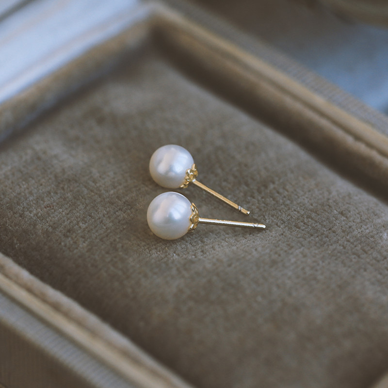 Silver Bench s925 pure silver ear pin 2020 new wave natural fresh water right round no time pearl small bulb earrings woman