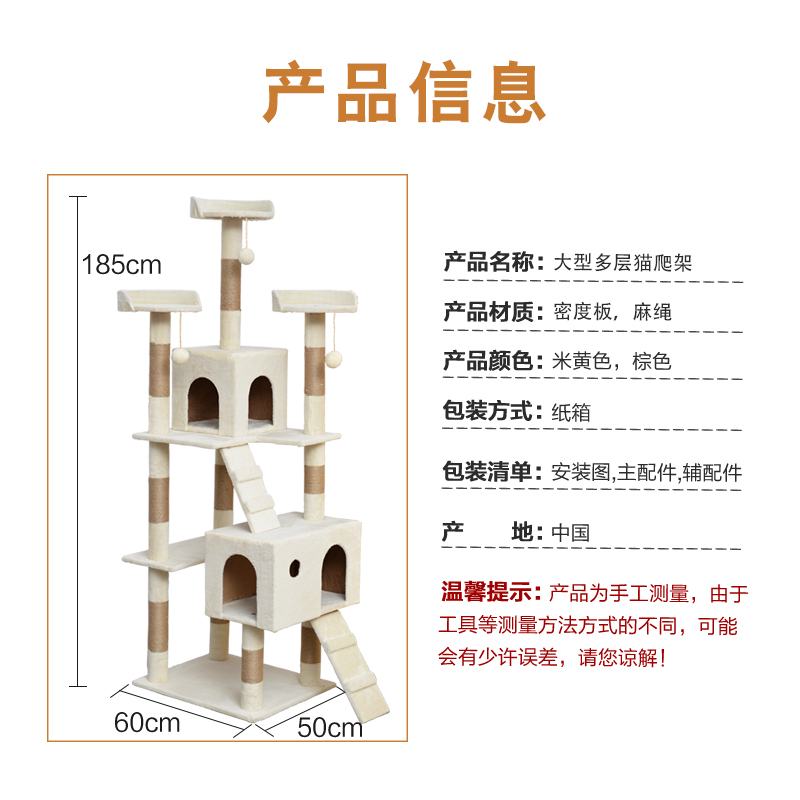 Cat climbing frame cat nest cat tree one large luxury cat tower sisal Tongtianzhu jumping platform cat toy villa cat shelf