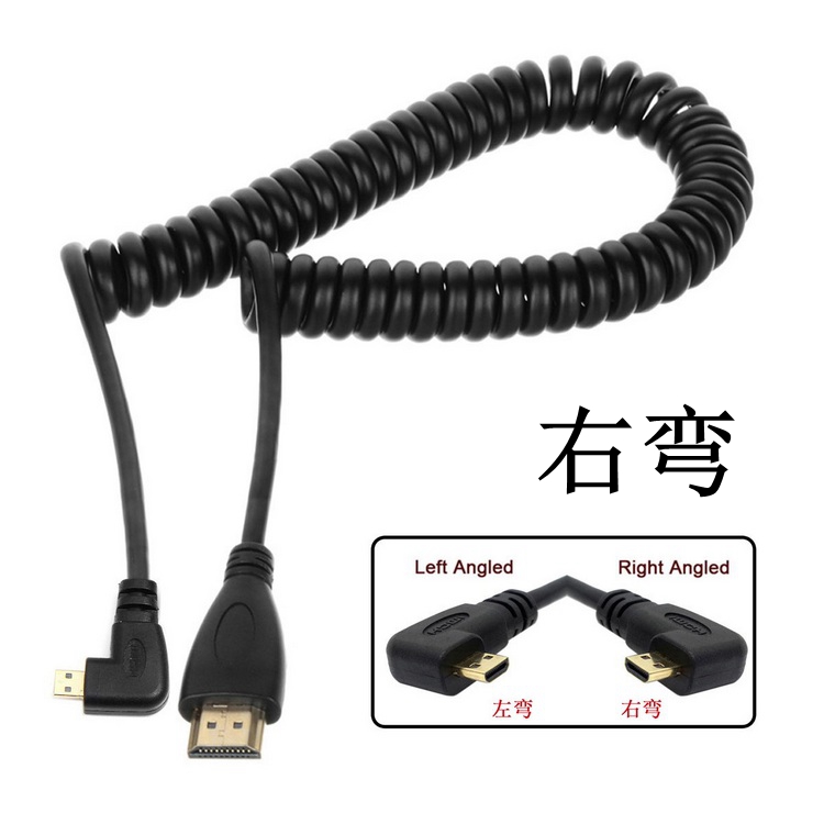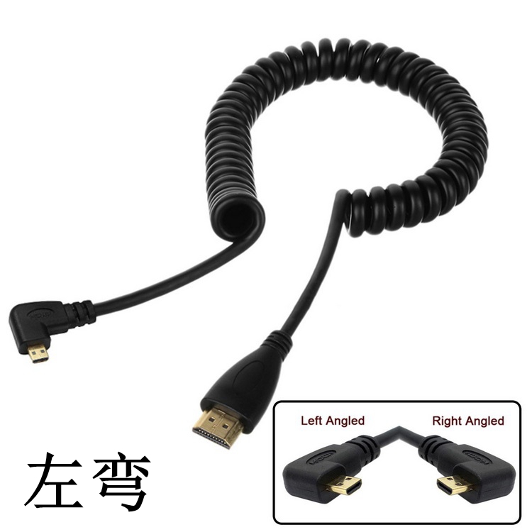 Right-angle elbow mobile phone tablet 90 degrees left and right bend Micro HDMI to HDMI high-definition spring line telescopic line 2m