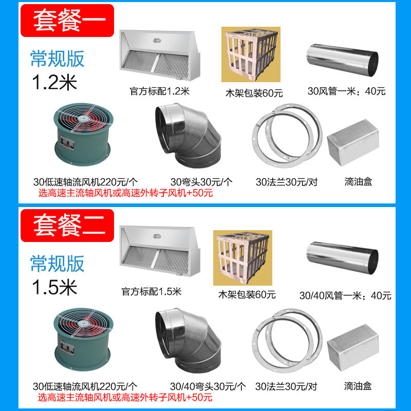 Stainless steel exhaust hood Galvanized white iron square ventilation pipe Commercial restaurant canteen Restaurant kitchen range hood
