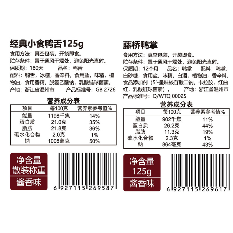 Tengqiao brand Wenzhou specialty snacks gourmet duck tongue 125g duck palm 125g sauce duck snacks cooked food