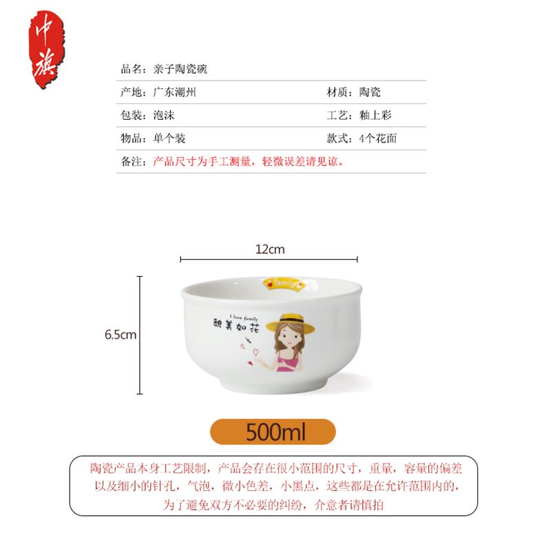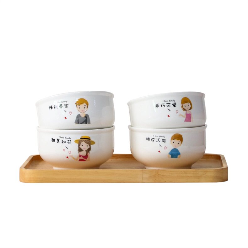 Parent-child Bowl Family Three-Mouth Four-Mouth Bowl Home Creative Family Ceramic Bowl 5 Inch Porcelain Bowl Lettering Custom Private