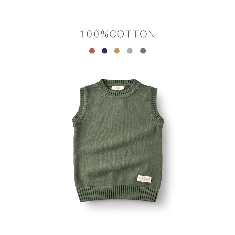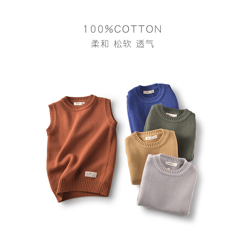 Children's clothes boy's sweater vest pure cotton 2019 autumn and winter new children's sweater sleeve large children's knitting shoulder