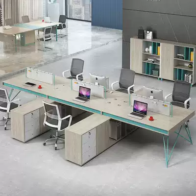 Desk double face to face simple modern staff staff creative steel frame 4 people Office table and chair combination