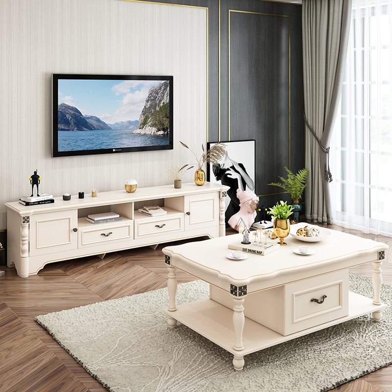 Nordic TV cabinet Coffee table combination Modern simple solid wood TV cabinet Small living room white TV cabinet 2 meters