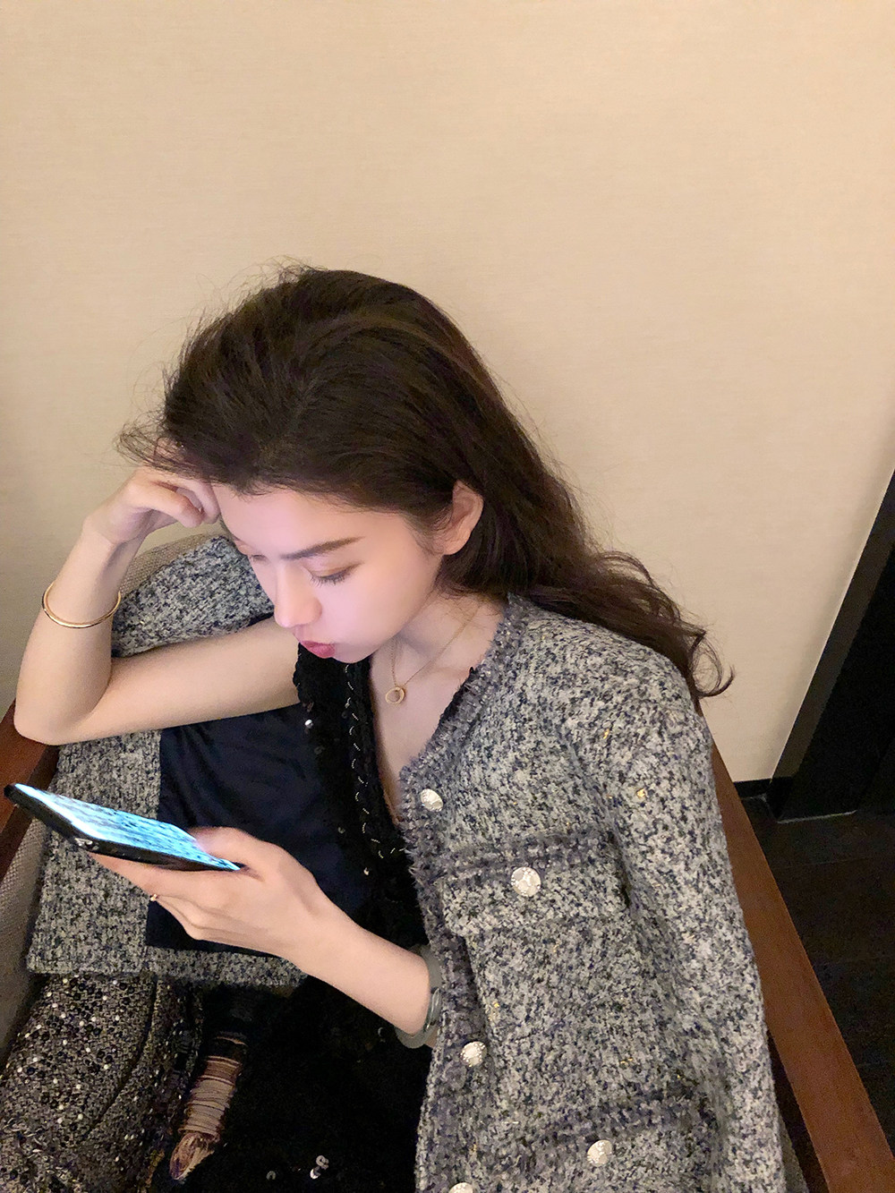The handled small fragrant suit of autumn and winter name Yuanyuan temperament jacket V collar sleeveless fashion Two sets