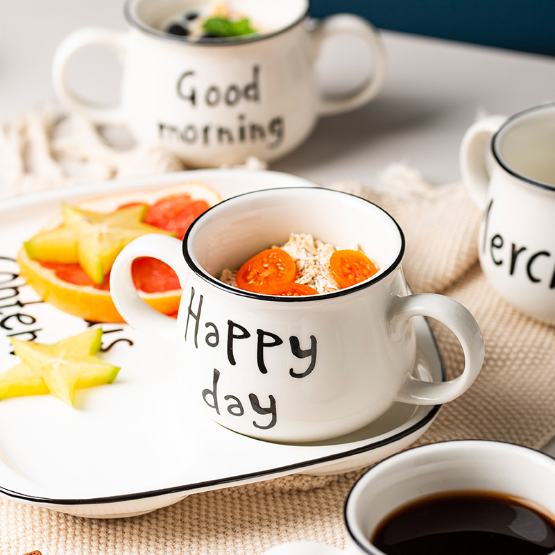 Yay Show Day Style Breakfast Cutlery Sets Creative Home Ceramic Bowls Pang Pan Milk Oat Breakfast Bowl