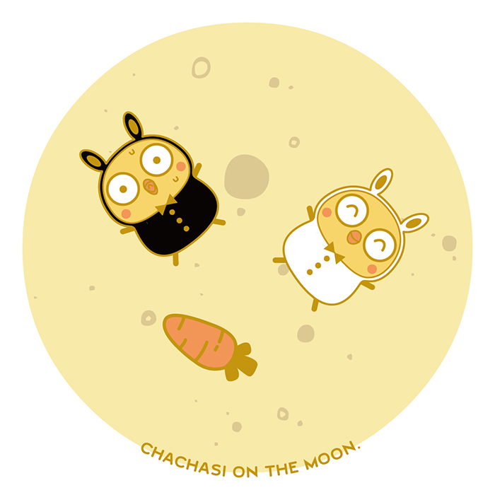Black Rabbit Cha White Rabbit Cha Cha Chas Rabbit Set on Carrot Moon