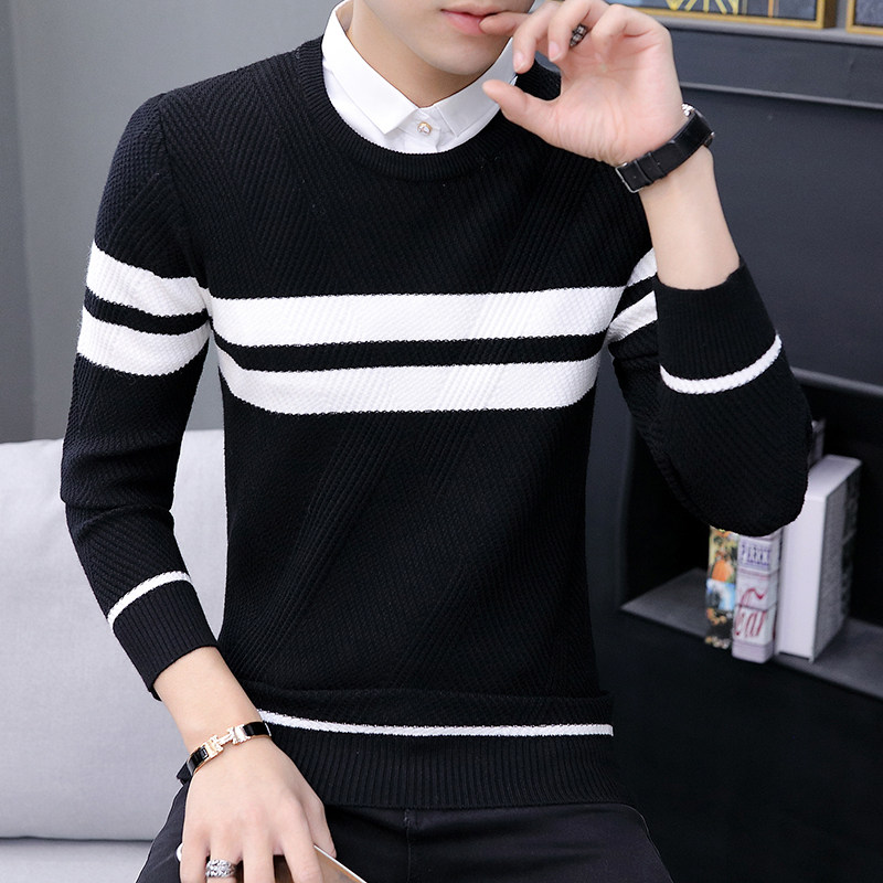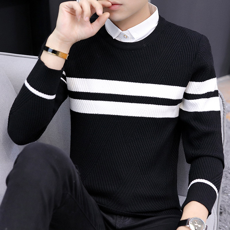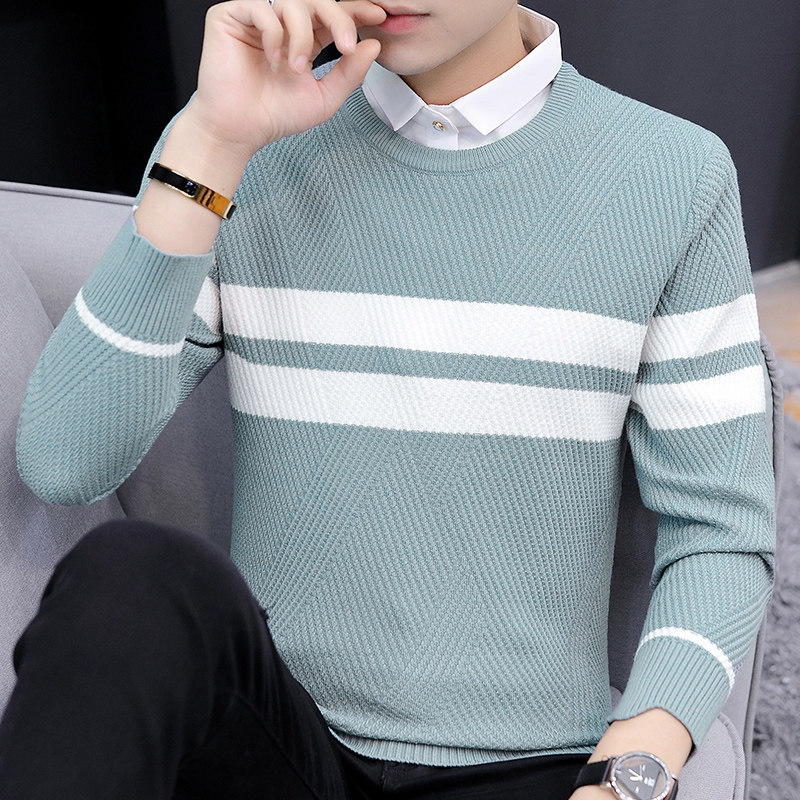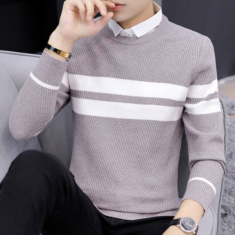 Autumn winter new fake two sweaters male and Korean version of the body shirt collar trendy stripes to hit underhand jersey men's blouses