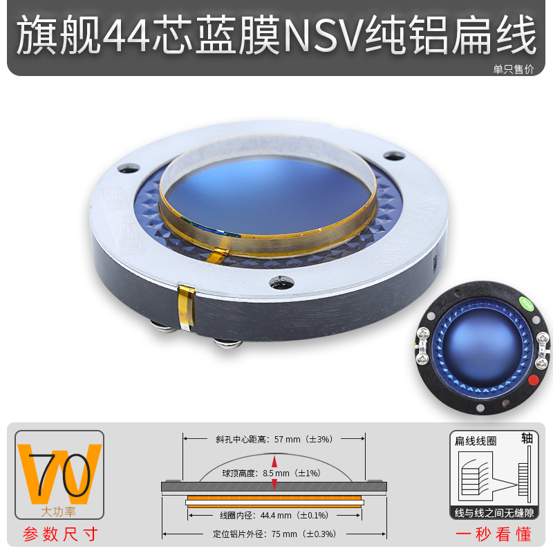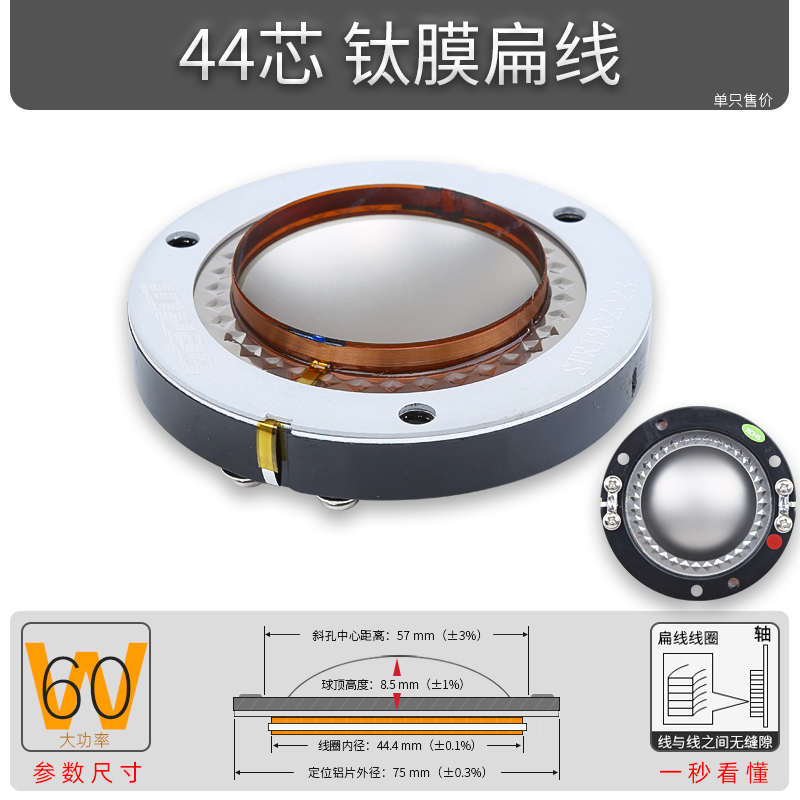 Round frame 44 4mm treble voice coil 44 Core wedding speaker aluminium flat wire Import horn Performance High power 442