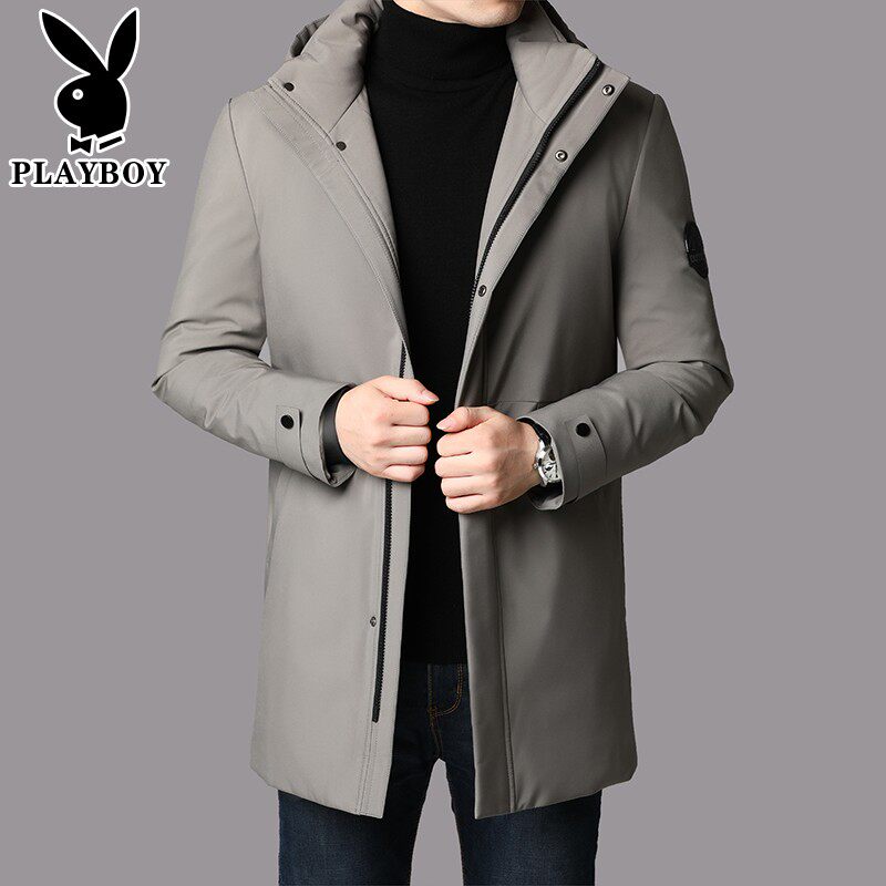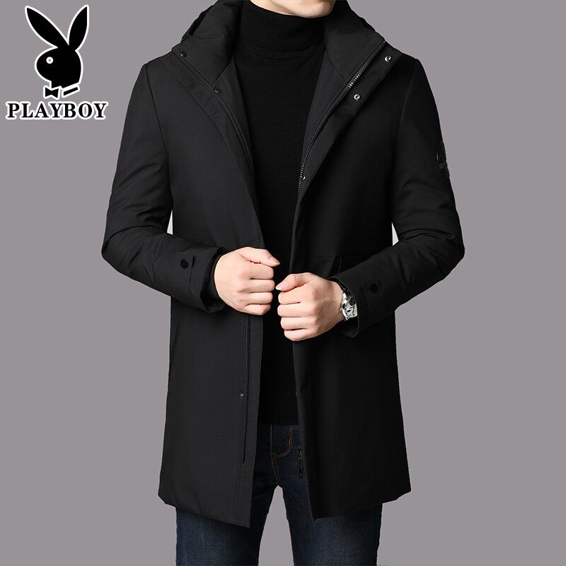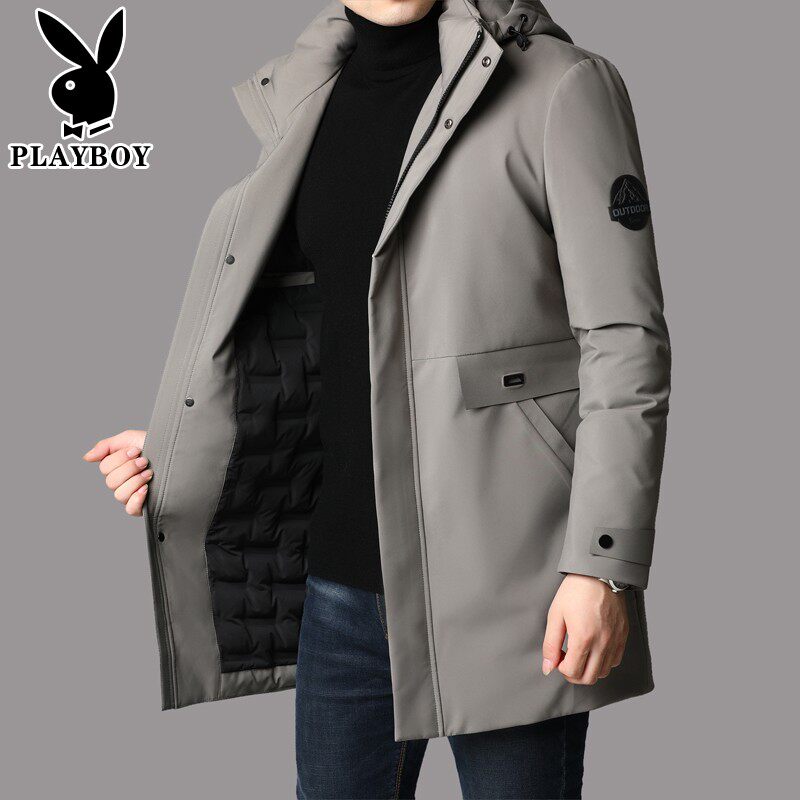 Playboy 2022 winter new men's white duck down jacket mid-length hooded large size light jacket