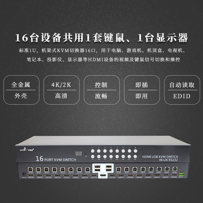 KVM switcher HDMI automatic 16-port USB 16 in 1 out of display keyboard Mouse Print machine coshareware 12