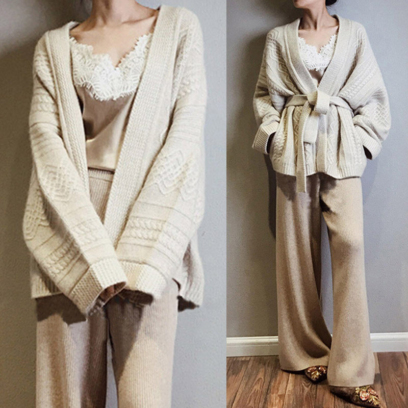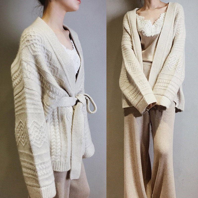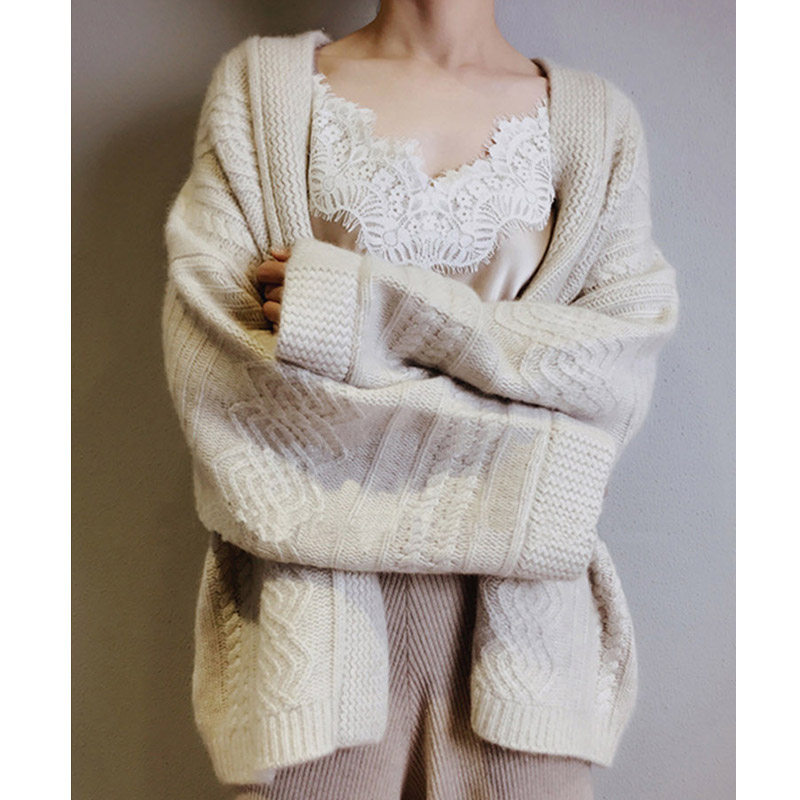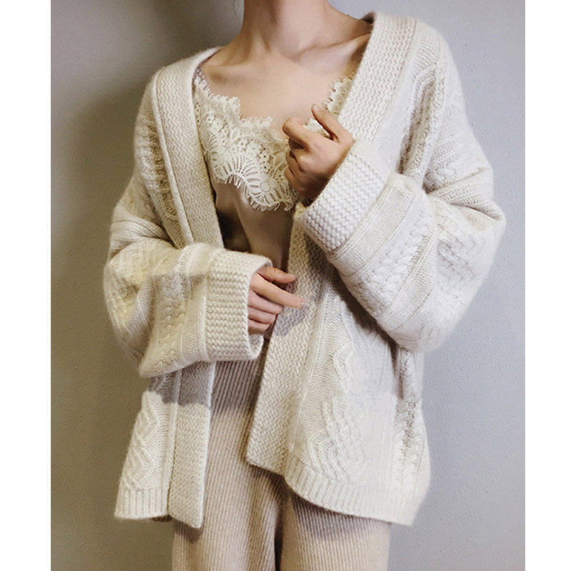 Knitted cardigan women's autumn and winter French retro lace top loose lazy twist twist sweater thickened temperament jacket
