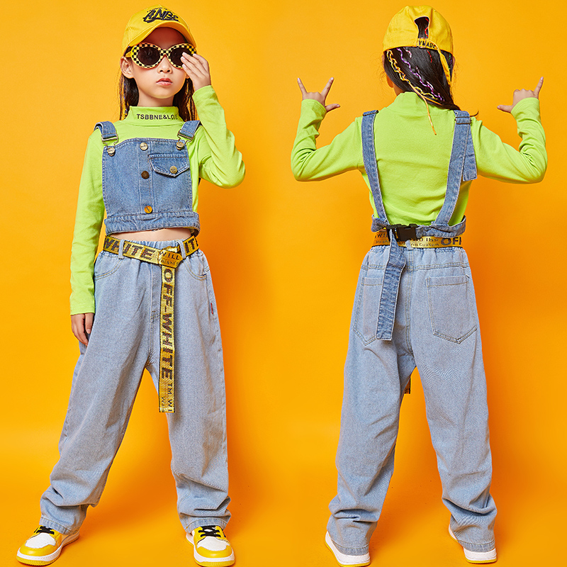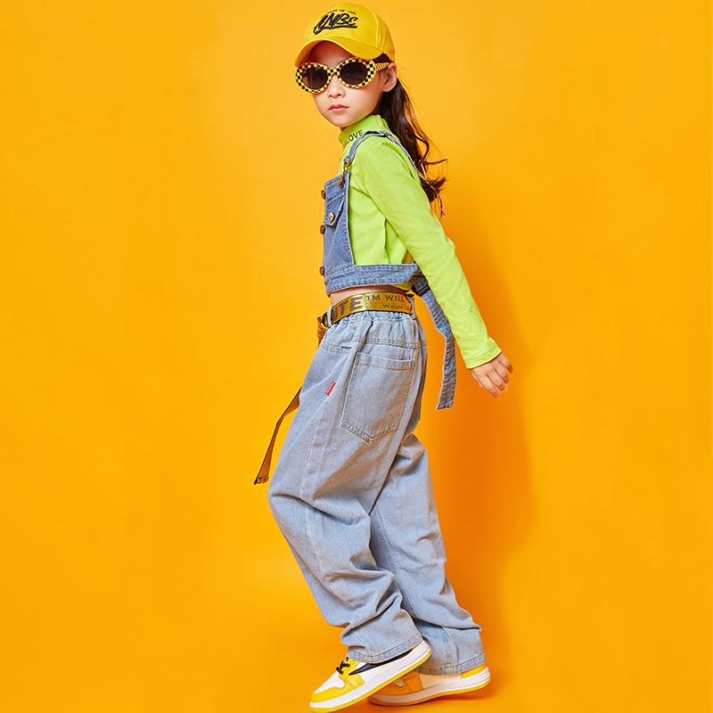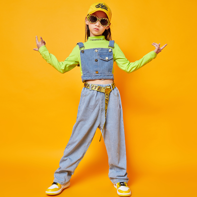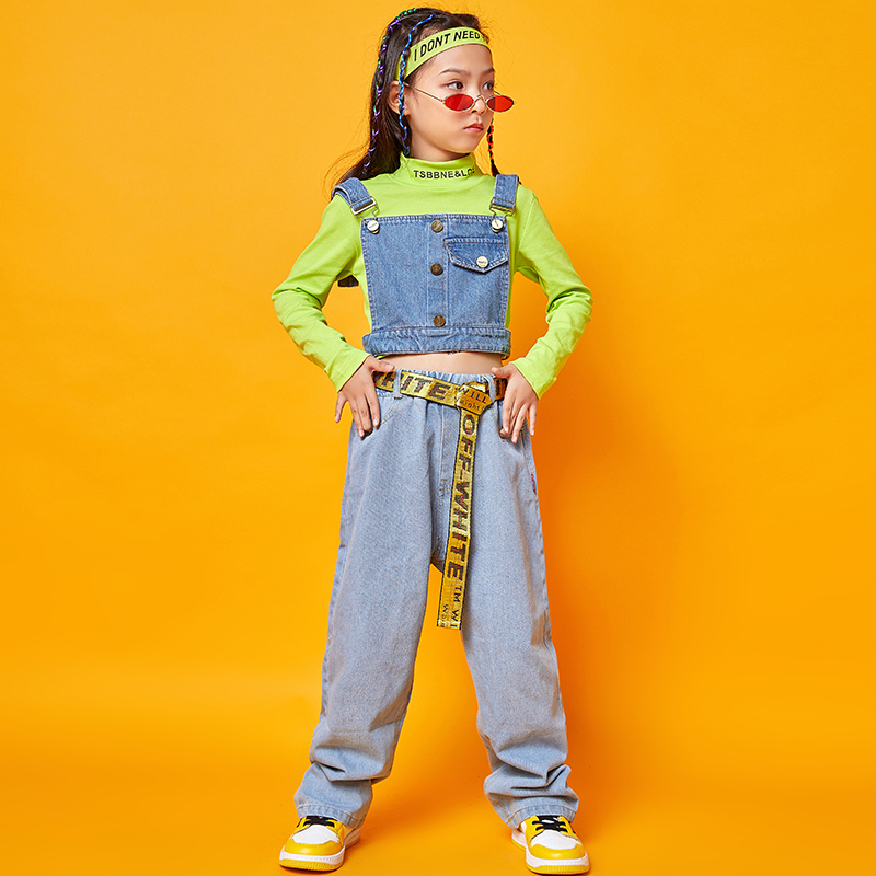 Children hip hop girls street dance suit Han version of Luumb short sleeve tops girl jazz dance show clothing