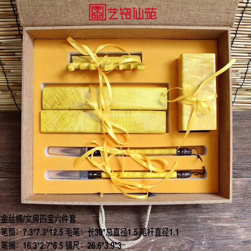 Jinsi Nanmu Study Four Treasures Six-piece Retro Daye Nanmu Study Supplies Pen Holder Pen Holder Pen Inkstone Gift Box