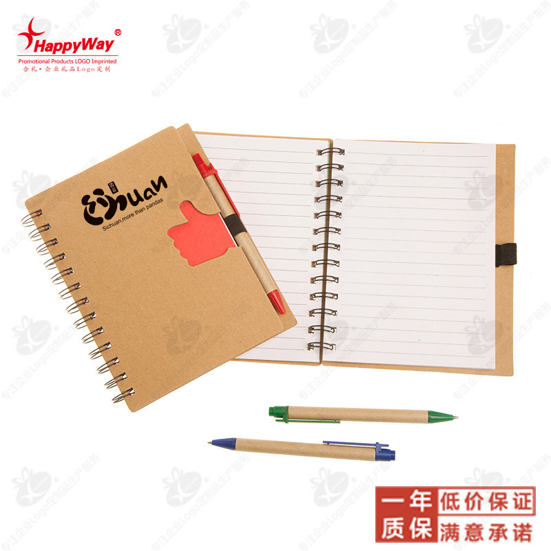 Environmental friendly then sign this custom print logo enterprise advertising gift exhibition promotion gift with pen kraft paper coil book