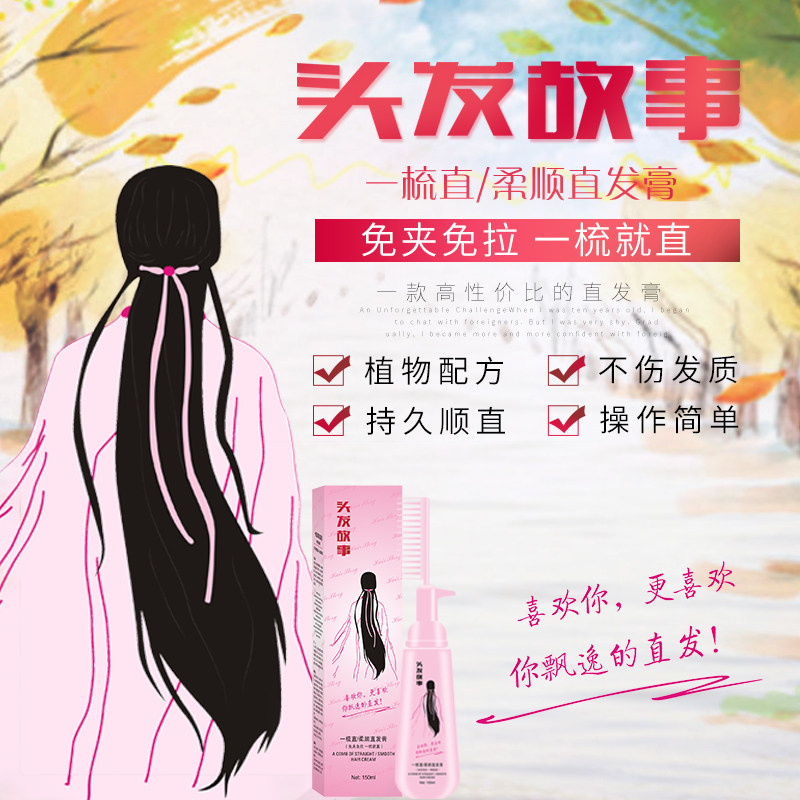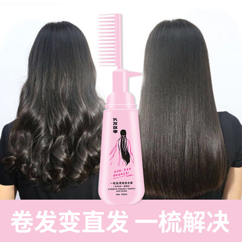 Hair one comb straight free of pull-free soft and smooth curly male and female curly hair straightaway permanent pull straight paste straight hair cream Home softener
