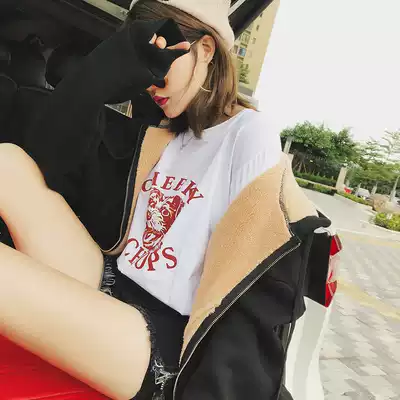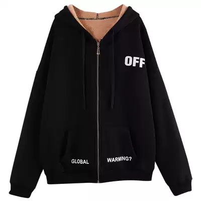 Blue sweatshirt women's hooded 2021 autumn and winter plus velvet padded cardigan jacket Korean loose lazy wind zipper bf wind