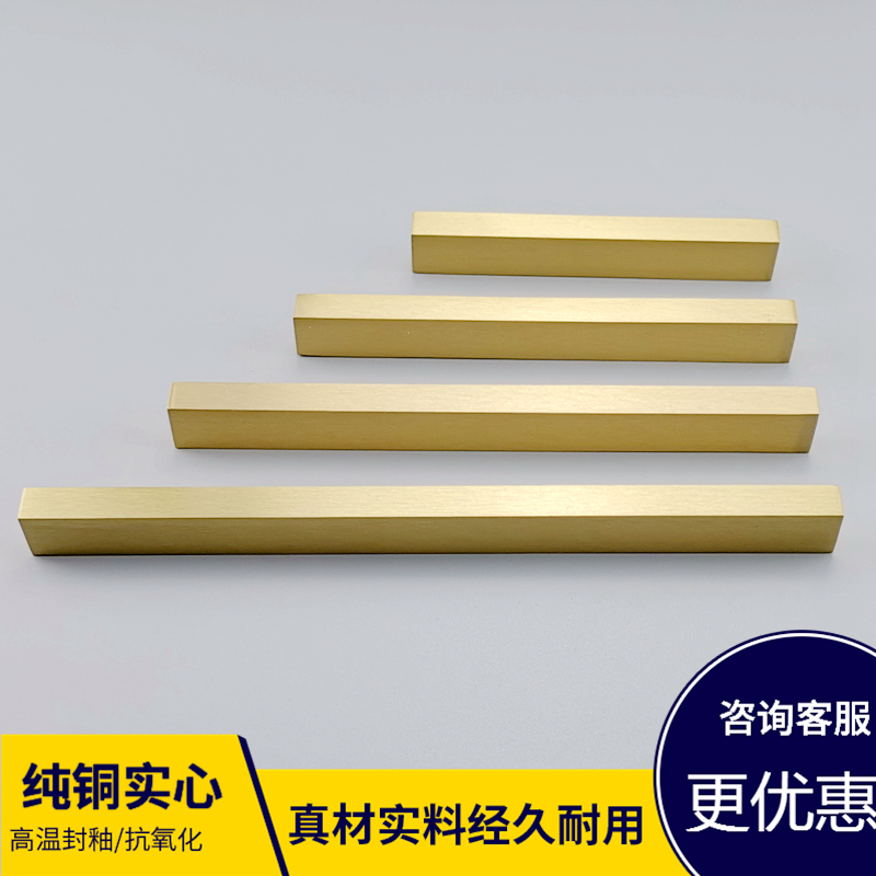 Pure copper cabinet door handle all copper modern minimalist wardrobe overall cabinet drawer Nordic light luxury golden long handle brass