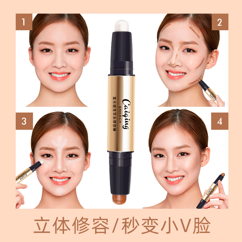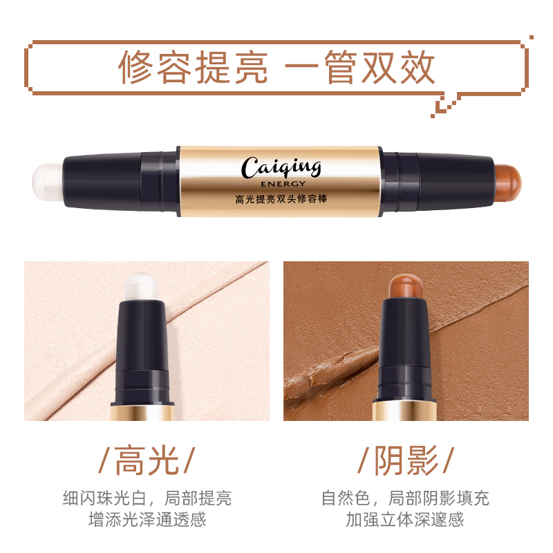 Contouring highlighter one-piece disc dual-use double-head pen shadow nose shadow brightens the three-in-one male and female reclining silkworm moisture concealer