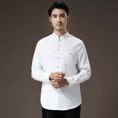 Chinese style retro male middle-aged and elderly Spring and Autumn long sleeve shirt Chinese style high-end men's tunic casual long sleeve shirt
