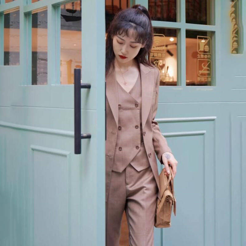 Temperament Single row khaki (top pants)Temperament single row Khaki(top pants vest) Double-breasted navy blue (top pants)Sky blue(top pants)Sky blue (top pants horse