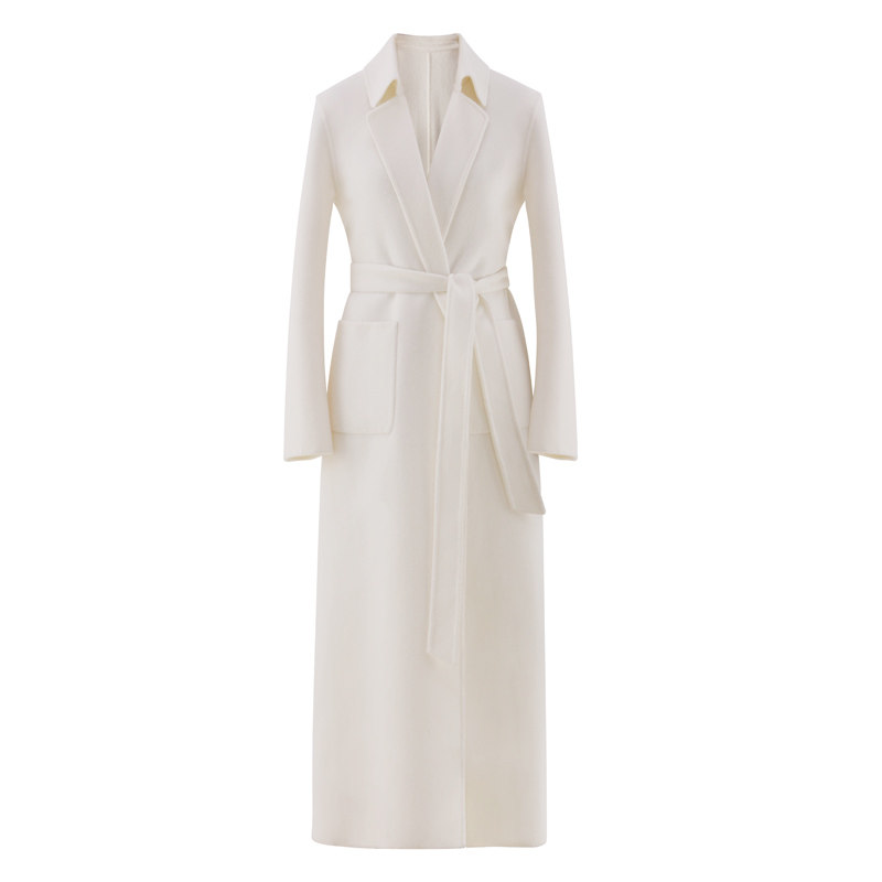 Sanskrit pure white wool coat woman 2021 autumn and winter new over knee long version high-end bifacial wool What to wear