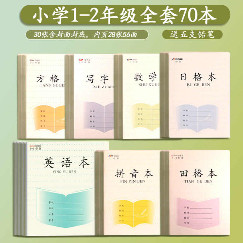 Thickened 1-2 grade primary school students homework book Jiangsu Province unified standard pinyin field grid writing mathematics today's square grid English book kindergarten children beginners exercise book 28 pages