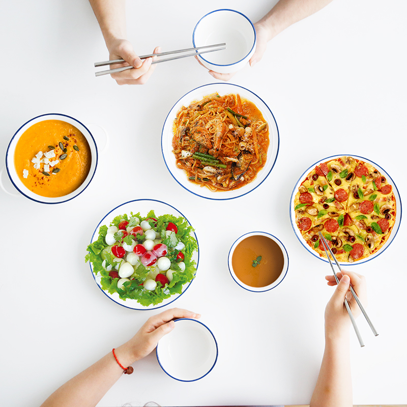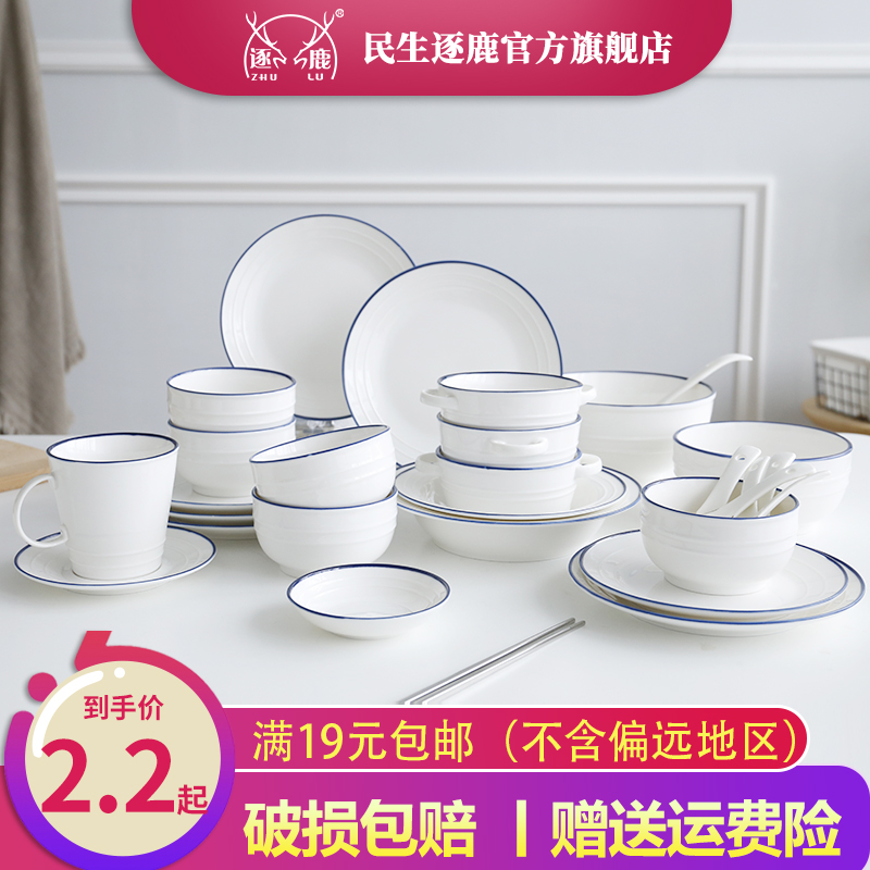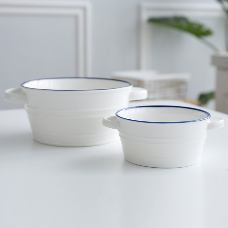 People's Livelihood Deer Ceramics Norwegian Forest Simple Nordic Bowl ins Wind Anti-scalding Binaural Bowl Straw Hat Soup Plate Microwave