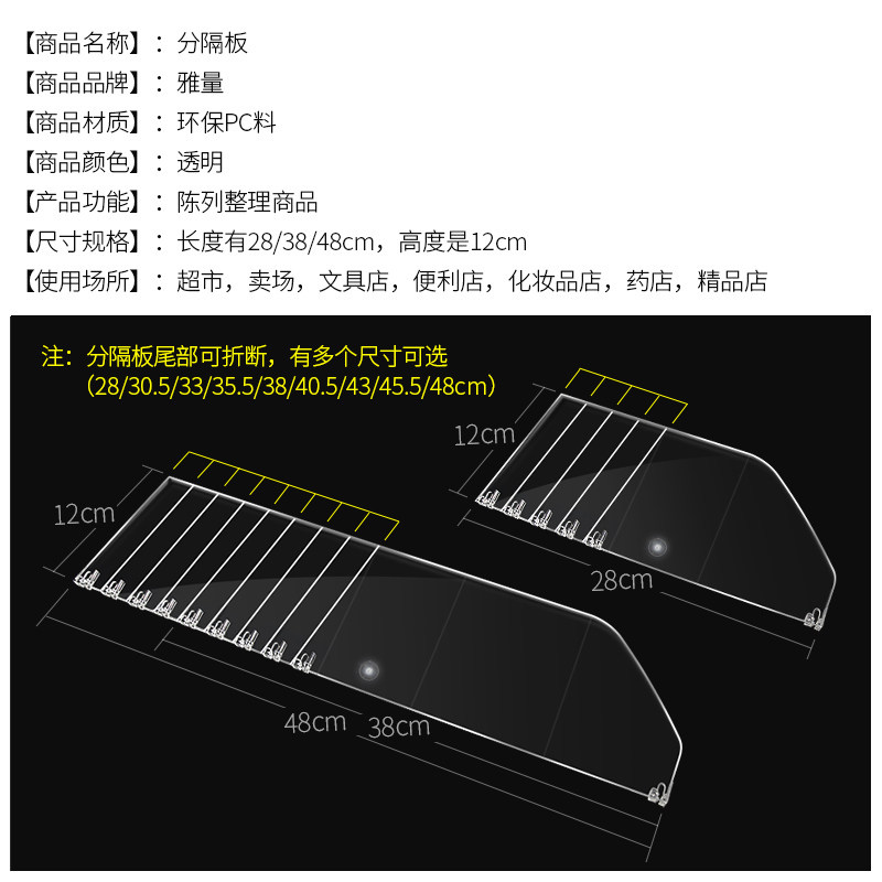 Supermarket shelf divider transparent PC plastic store merchandise display support shelf convenience store partition can be broken