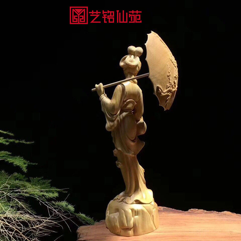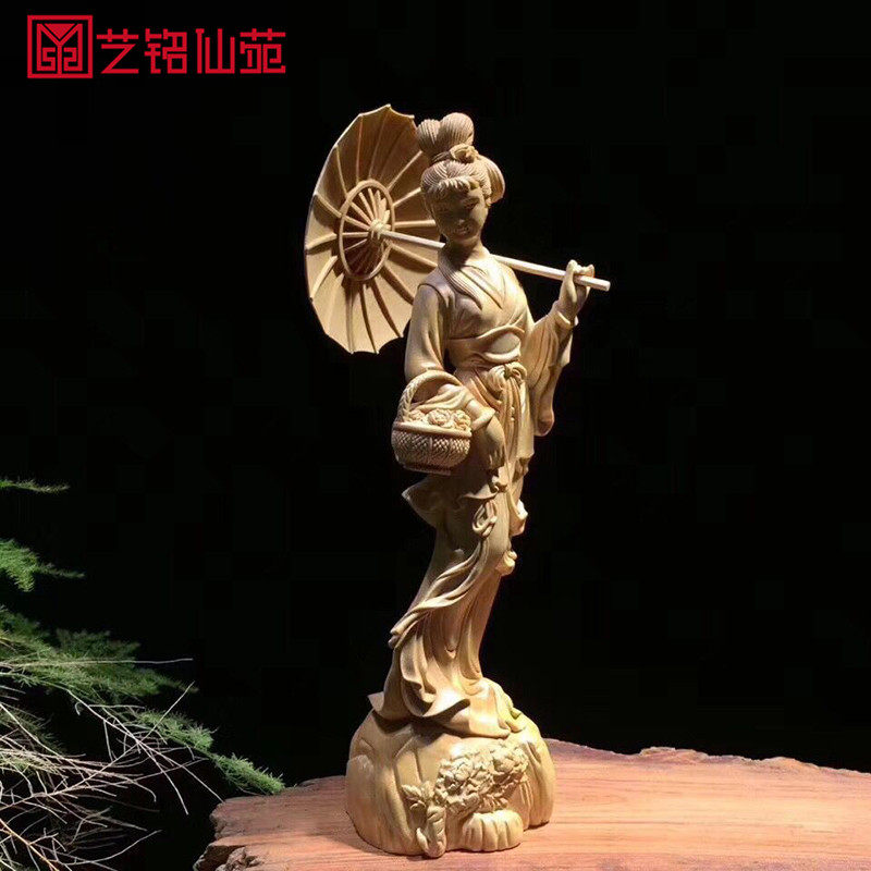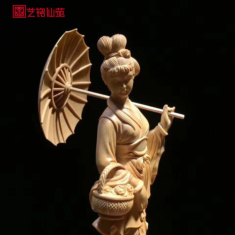 Small Leafy Yellow Poplar Wood Carving Classical Beauties Swing room Dining Room Adornment Office Swomen Crafts Gifts Swing Accessories Collection Gifts
