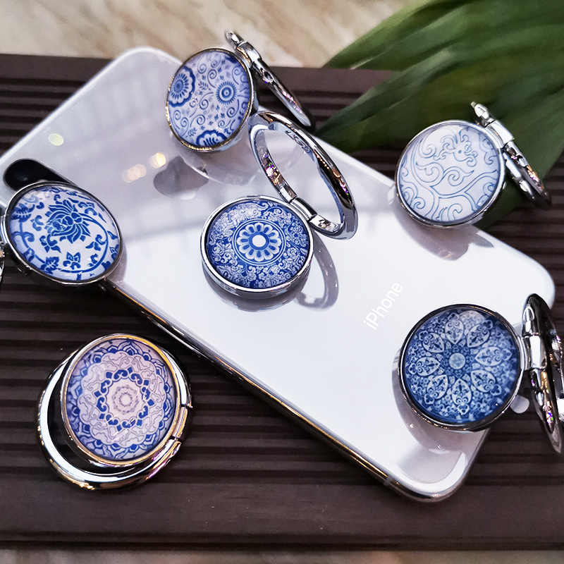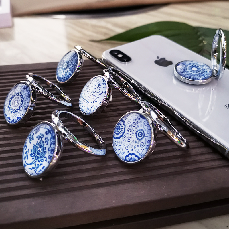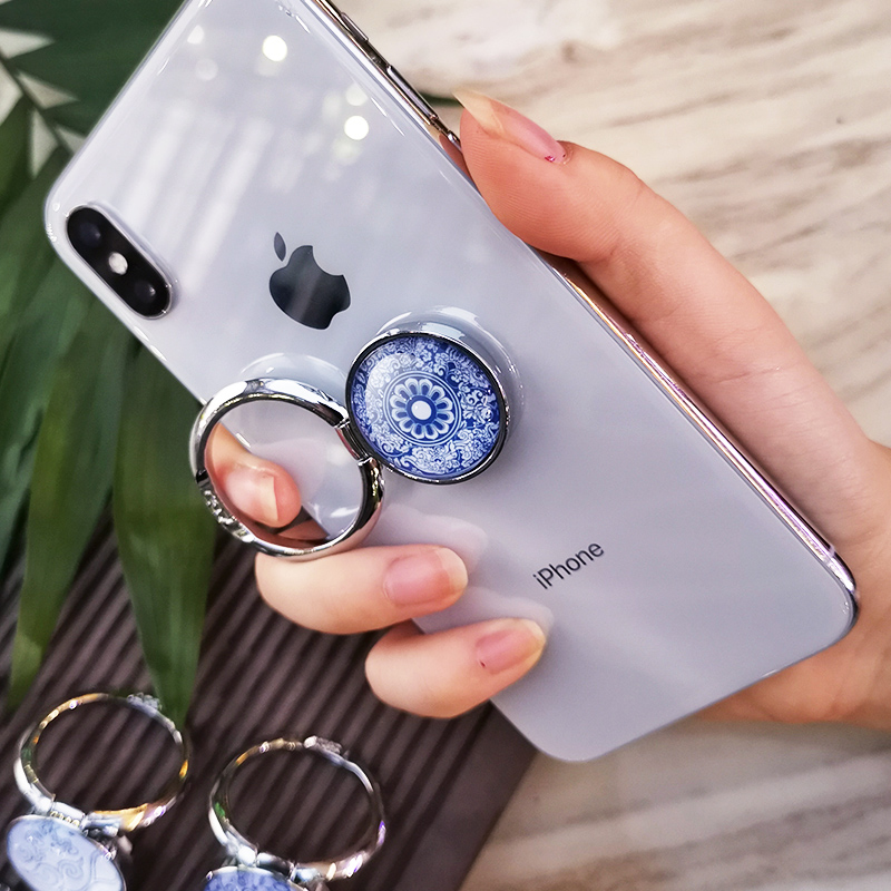 Ring buckle bracket Apple 8x mobile phone finger buckle ring Huawei oppo Xiaomi vivo mobile phone holder universal men and women convenient lazy creative blue and white porcelain ring finger mobile phone protective shell buckle paste metal new