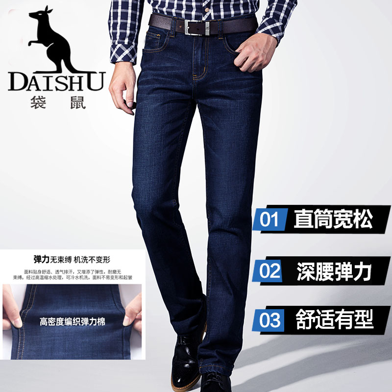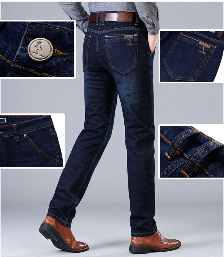 Kangaroo Fall Style Jeans Men's Straight Barrel Loose Elastic Autumn Winter Money Middle Aged Casual Plus Suede Male youth