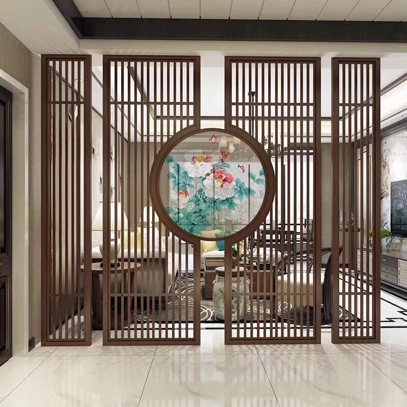 Solid wood screen partition of European style new Chinese style Japanese carving hollow porch wall customization of background wall