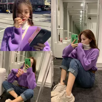 Mrs Qian college style pullover knitwear women's autumn and winter 2019 new loose Korean wool blended knitwear