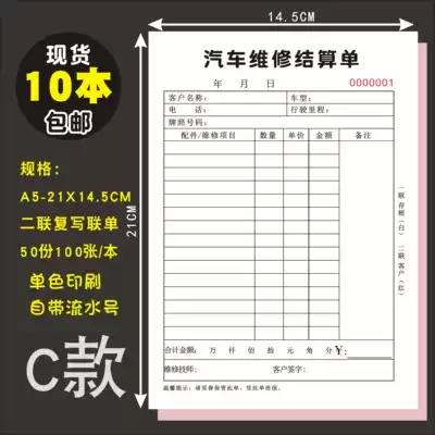 Printed car repair order custom repair shop pick-up single tire construction single dispatch order service Settlement list