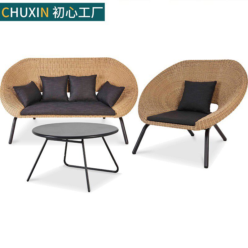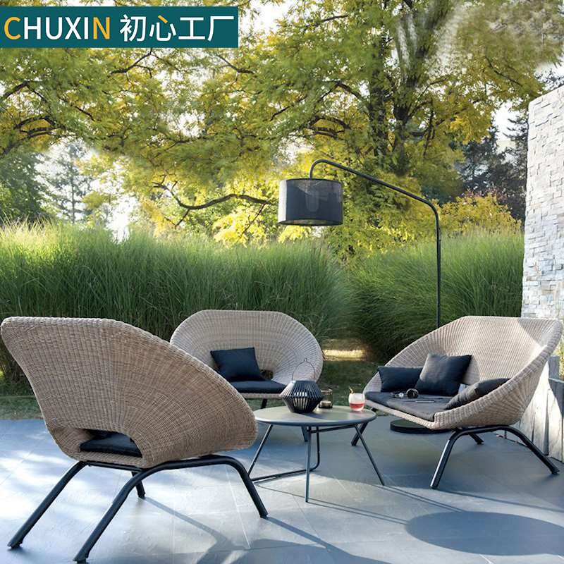 Outdoor sofa patio balcony open-air waterproof sunscreen outdoor leisure small family type minimalist backrest rattan combinations