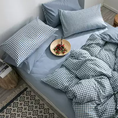 Nordic simple Japanese plaid cotton water wash cotton four-piece cotton bedding sheets quilt cover dormitory double