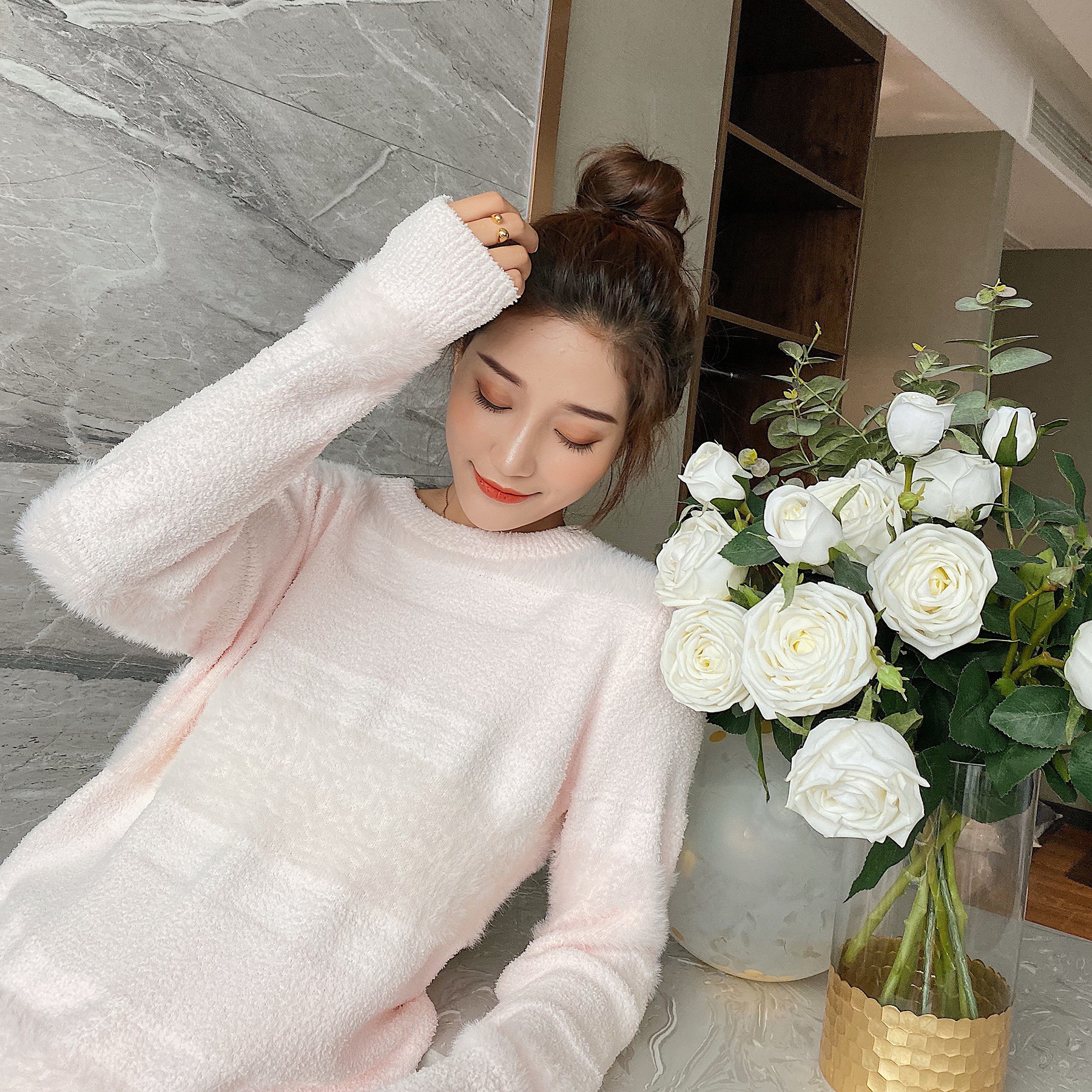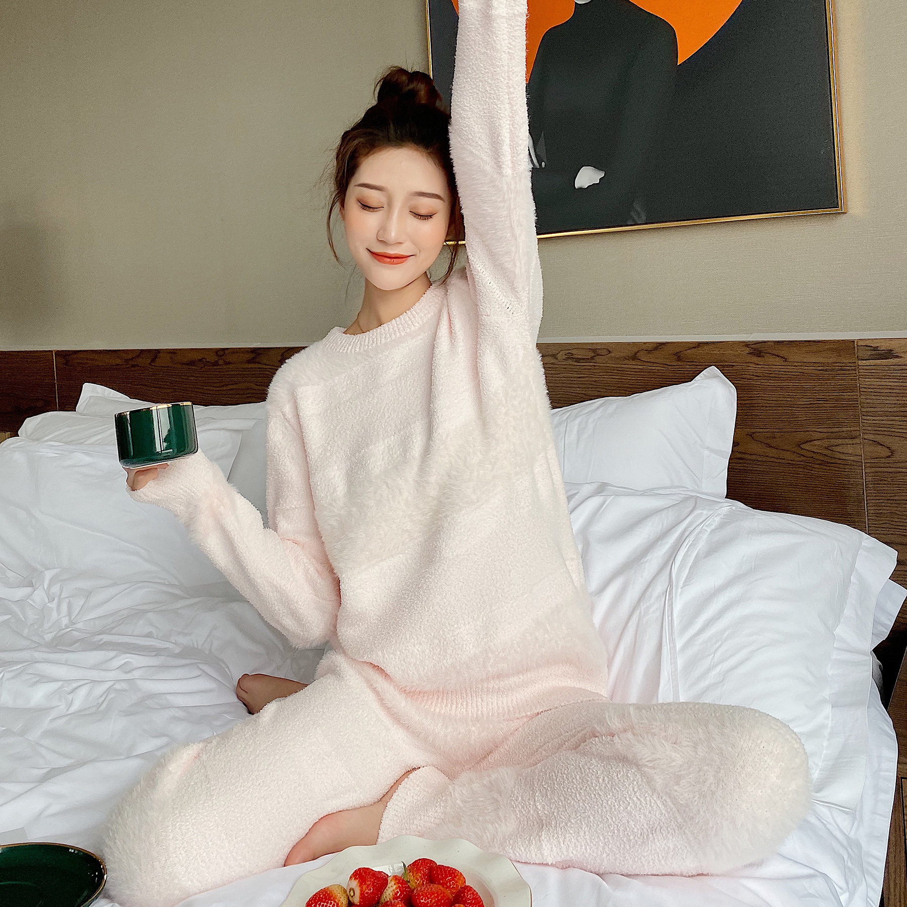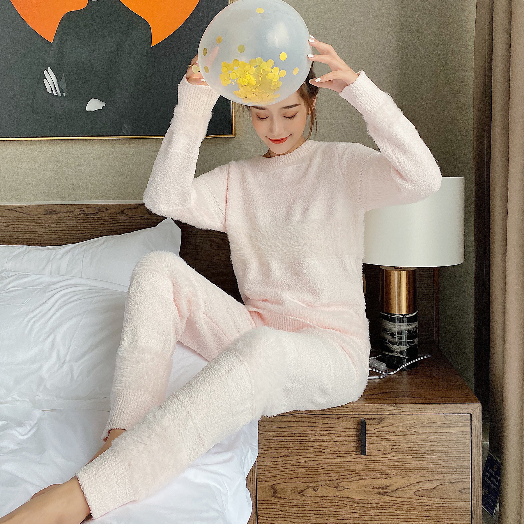 Soft pajamas women's autumn and winter warm thick imitation mink velvet girl cute cotton candy home suit set net red