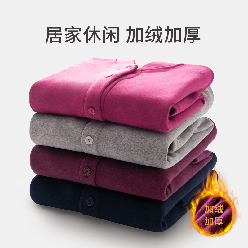 Spring weaving hot clothes elderly thickened female mother plus velvet cardigan pair suit men Middle-aged grandmother winter