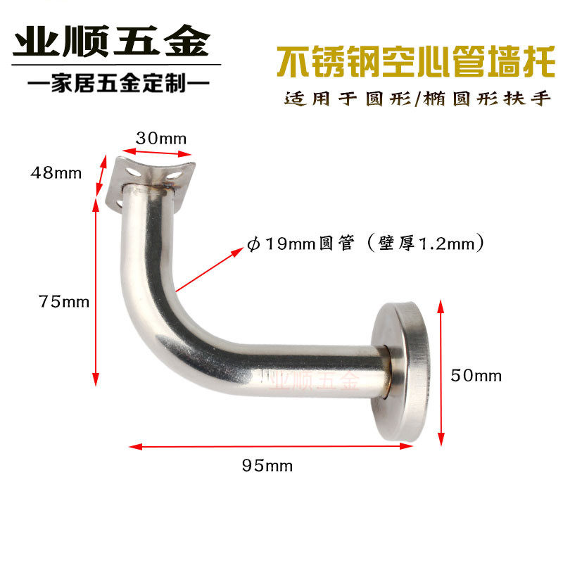 Customized 304 stainless steel figure 7 curved hollow round tube wall tray thick against the wall staircase handrail bracket hardware accessories