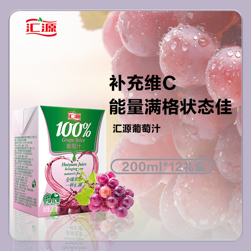 Huiyuan Pure Juice Grape Juice 200ml * 12 Boxed Fruit And Vegetable Juice Drink Whole Box Portable Gift Box