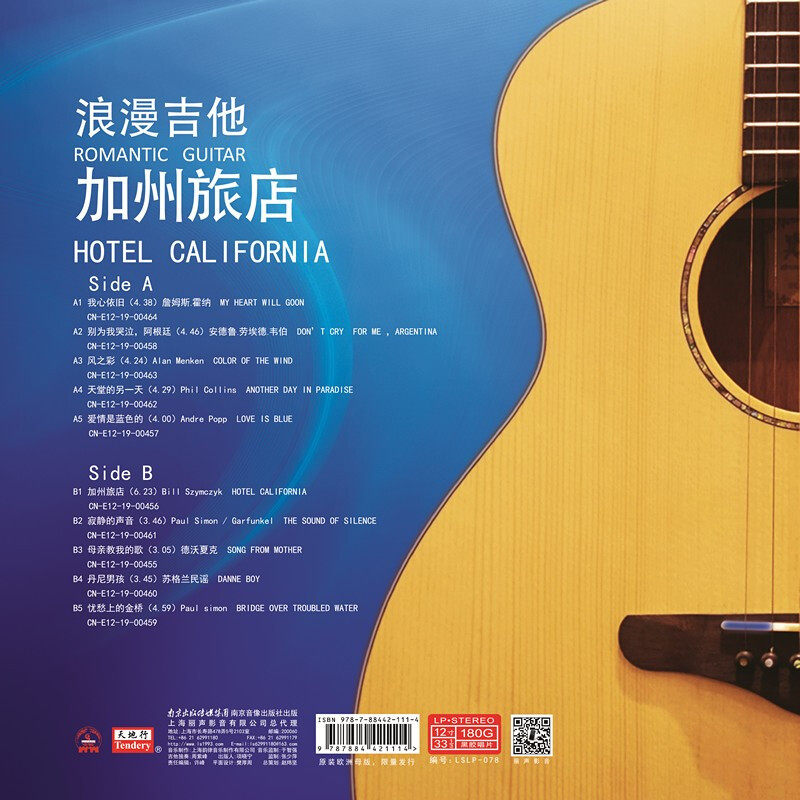 Romantic Guitar California Inn European and American Classic Music LP Vinyl Records Phonograph Special 12 inch Disc