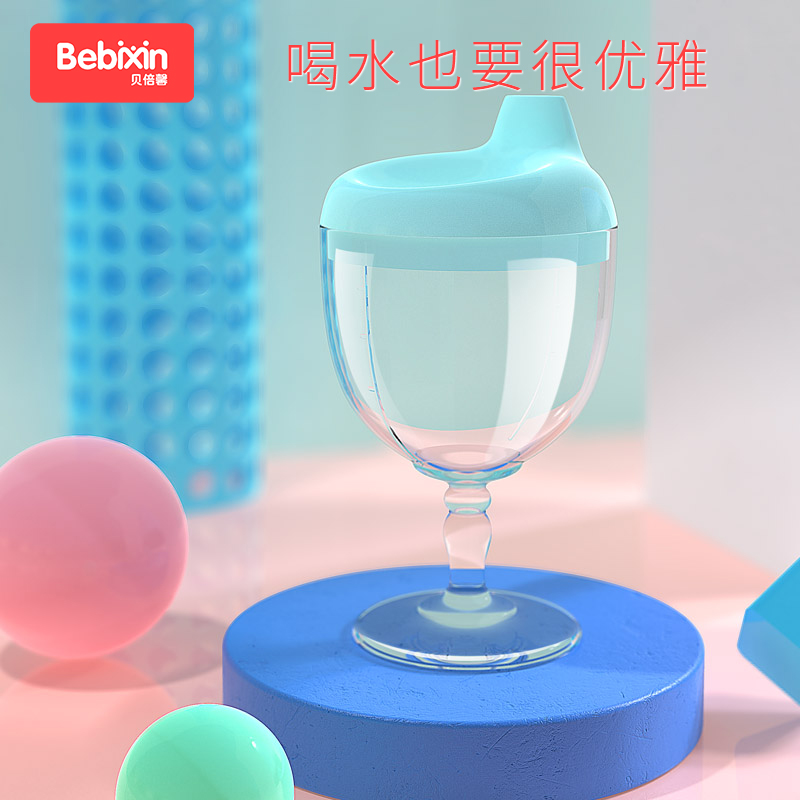 Beyfold baby juice bottle baby suction juices child fruit mug juice cup with lid plastic high foot cup