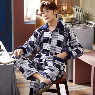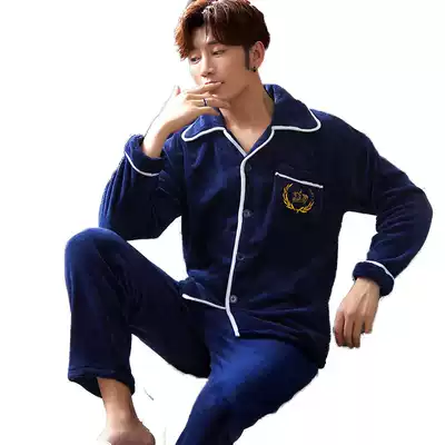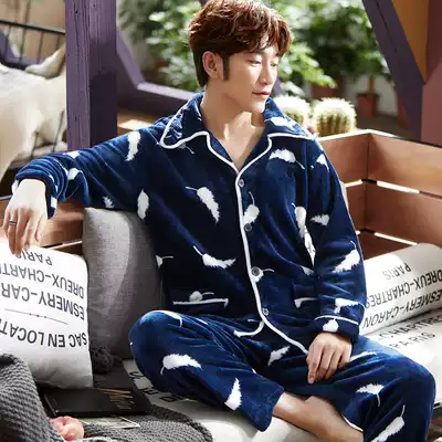 Winter men's coral velvet pajamas thickened winter long-sleeved flannel plus velvet warm home clothes plus size suit